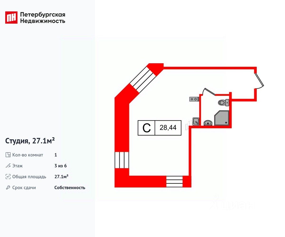 Удобная, классическая, функциональная европланировка. Общая площадь апартаментов - 27.1 м², высота потолка 3 м.