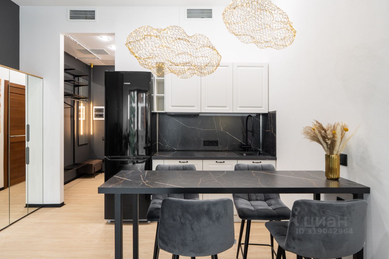 В студии есть вся необходимая мебель и техника. Установлено центральное кондиционирование с пультом управлением. Дорогая входная дверь с электронным замком и внутрипольные конвекторы.