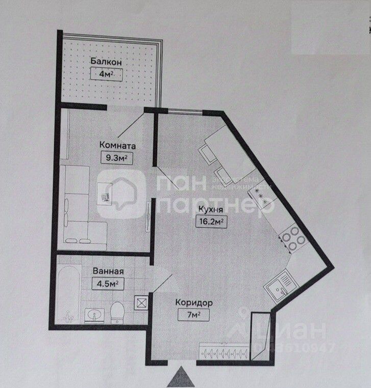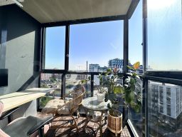 Про квapтиру: кухня-гостиная имеет единое пространство с коридором и занимает 23 кв.м, за счёт своей формы позволяет по-разному зонировать пространство, спальня - 9,5 кв.м, просторный балкон с оборудованной зоной отдыха или можно организовать рабочий кабинет - 4 кв.м. Окна выходят в тихий двор на западную сторону. Есть кондиционер и бризер. У квартиры на этаже соседи только с одной стороны.