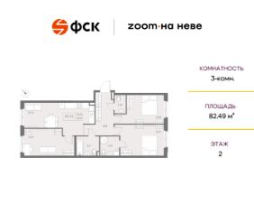Цена со скидкой до 30% в прямой продаже от застройщика — только в этом месяце. При покупке апартаментов - паркинг за полцены. На все апартаменты действует беспроцентная рассрочка. Купите на распродаже! Покупка недвижимости в Zoom на Неве сейчас со скидкой до 30% позволит через 2 года получить доход до 6 300 000 руб. Роскошные виды на Неву. 3-к апартамент в комплексе класса бизнес-лайт Zoom на Неве на 2-м этаже. Общая площадь 82,49. Чистовая отделка.