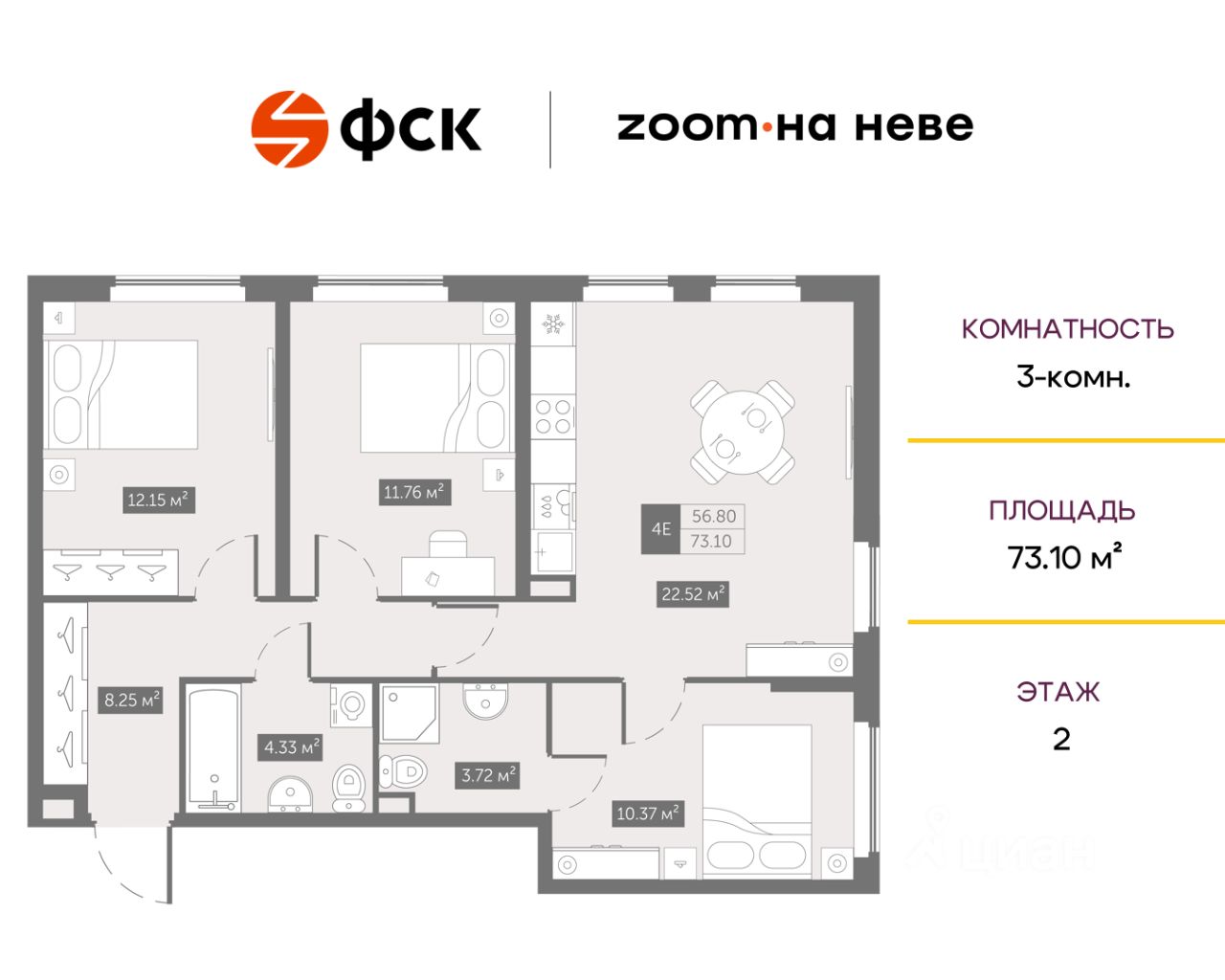 Цена со скидкой до 30% в прямой продаже от застройщика — только в этом месяце. При покупке апартаментов - паркинг за полцены. На все апартаменты действует беспроцентная рассрочка. Купите на распродаже! Покупка недвижимости в Zoom на Неве сейчас со скидкой до 30% позволит через 2 года получить доход до 6 300 000 руб. Роскошные виды на Неву. 3-к апартамент в комплексе класса бизнес-лайт Zoom на Неве на 2-м этаже. Общая площадь 73,1. Без отделки.
