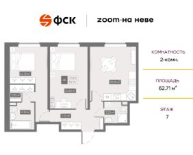 Цена со скидкой до 30% в прямой продаже от застройщика — только в этом месяце. При покупке апартаментов - паркинг за полцены. На все апартаменты действует беспроцентная рассрочка. Купите на распродаже! Покупка недвижимости в Zoom на Неве сейчас со скидкой до 30% позволит через 2 года получить доход до 6 300 000 руб. Роскошные виды на Неву. 2-к апартамент в комплексе класса бизнес-лайт Zoom на Неве на 7-м этаже. Общая площадь 62,71. Без отделки.
