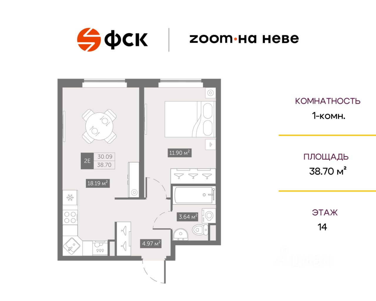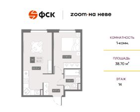 Цена со скидкой до 30% в прямой продаже от застройщика — только в этом месяце. При покупке апартаментов - паркинг за полцены. На все апартаменты действует беспроцентная рассрочка. Купите на распродаже! Покупка недвижимости в Zoom на Неве сейчас со скидкой до 30% позволит через 2 года получить доход до 6 300 000 руб. Роскошные виды на Неву. 1-к апартамент в комплексе класса бизнес-лайт Zoom на Неве на 14-м этаже. Общая площадь 38,7. Без отделки.