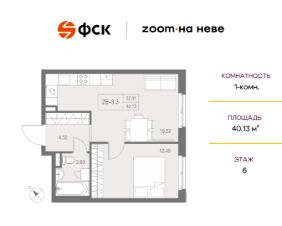 Цена со скидкой до 30% в прямой продаже от застройщика — только в этом месяце. При покупке апартаментов - паркинг за полцены. На все апартаменты действует беспроцентная рассрочка. Купите на распродаже! Покупка недвижимости в Zoom на Неве сейчас со скидкой до 30% позволит через 2 года получить доход до 6 300 000 руб. Роскошные виды на Неву. 1-к апартамент в комплексе класса бизнес-лайт Zoom на Неве на 6-м этаже. Общая площадь 40,13. Без отделки.