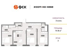 Цена со скидкой до 30% в прямой продаже от застройщика — только в этом месяце. При покупке апартаментов - паркинг за полцены. На все апартаменты действует беспроцентная рассрочка. Купите на распродаже! Покупка недвижимости в Zoom на Неве сейчас со скидкой до 30% позволит через 2 года получить доход до 6 300 000 руб. Роскошные виды на Неву. 3-к апартамент в комплексе класса бизнес-лайт Zoom на Неве на 3-м этаже. Общая площадь 74,18. Без отделки.