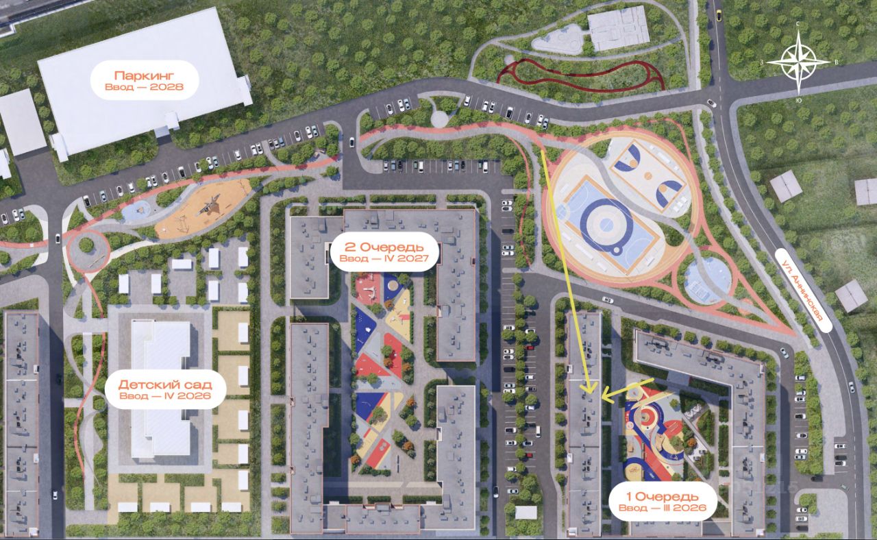 Окна выходят во двор (Отметил стрелками окна квартиры и корпус)