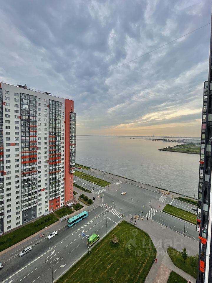 Окна кухни выходят во двор (солнце с утра), балкон в комнате с видом на залив (солнце всю вторую половину дня, а так же видны закаты).