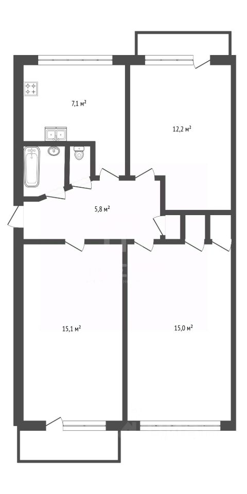 Планировка включает три изолированные просторные комнаты, что идеально подходит для семьи. Совмещённый санузел, два балкона — всё это делает квартиру ещё более практичной.