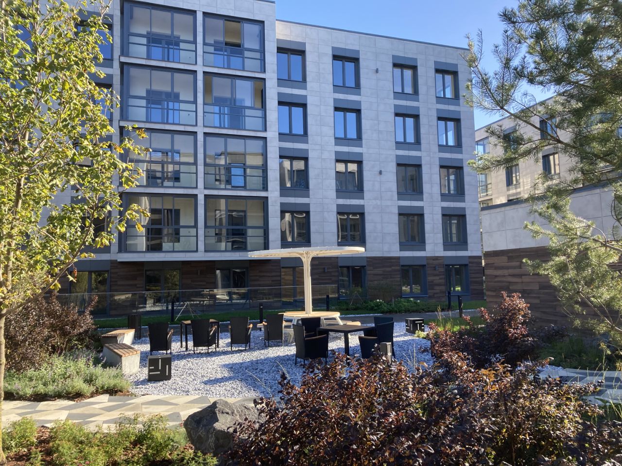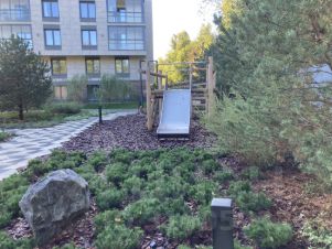 - На закрытой территории жилого комплекса имеется своя набережная, променад; зеленый берег с арт-объектами; все дворы обращены к полноводному каналу и парку "Дубки";