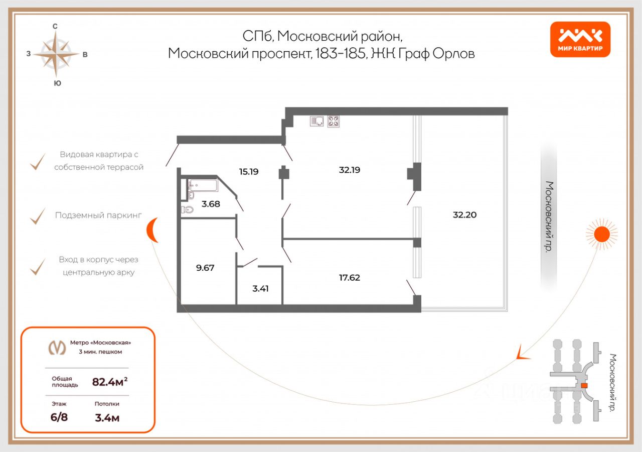Арт. 108419440 В продаже редкая квартира в одном из самых престижных и архитектурно выразительных жилых комплексов Санкт-Петербурга — ЖК "Граф Орлов", на самом Московском проспекте, в пешей доступности от метро "Московская".