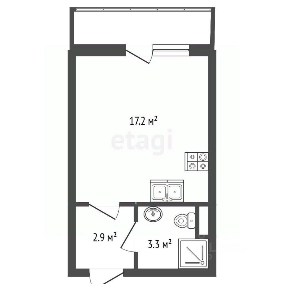 Одним из главных преимуществ этой студии является большая застекленная лоджия, которую можно легко переоборудовать в уютный кабинет или зону для отдыха.