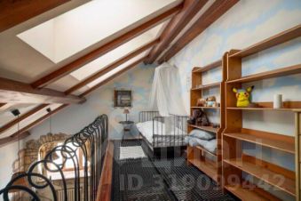 Пространство этажей объединяет широкая лестница, ступени которой выполнены из дуба. На мансардном этаже располагаются две спальни, просторная ванная комната, а также место отдыха с панорамным остеклением. В интерьере использованы дорогостоящие премиальные бренды. Благодаря большому количеству окон и высокому потолку, особняк наполнен светом, а интересное планировочное решение позволяет найти место, как для большого приема гостей, так и для уютного уединения.