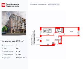 Уникальная, функциональная европланировка, большая кухня-гостиная 16.13 м², просторная прихожая 8.59 м². Общая площадь квартиры - 62.21 м², жилая 30.63 м², высота потолка 3 м.