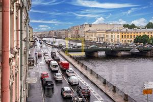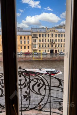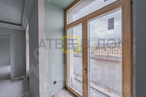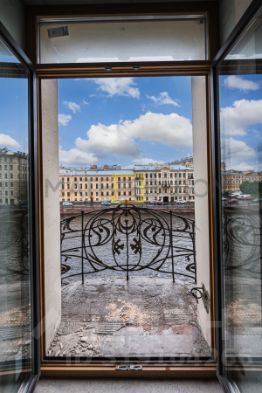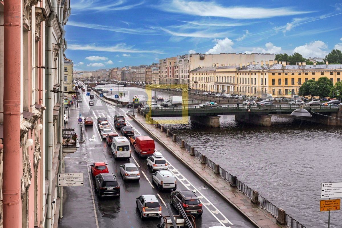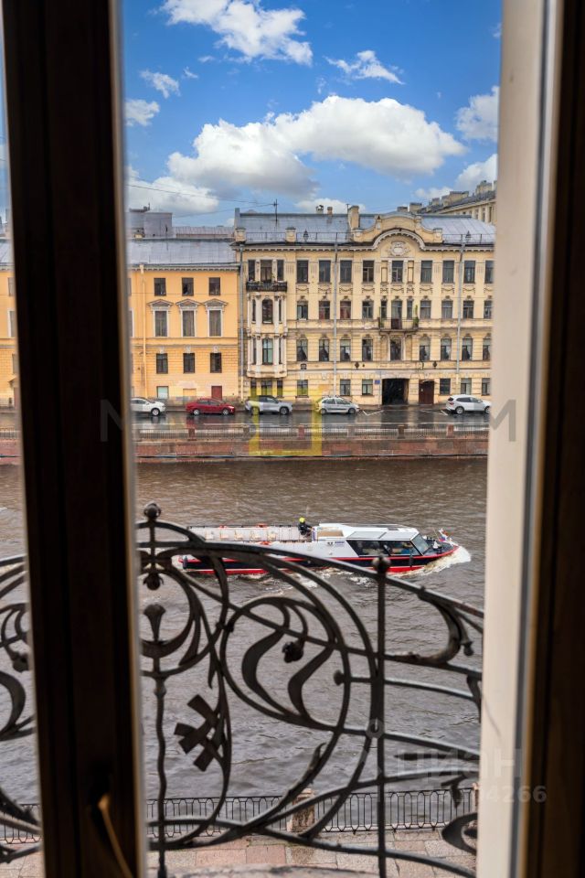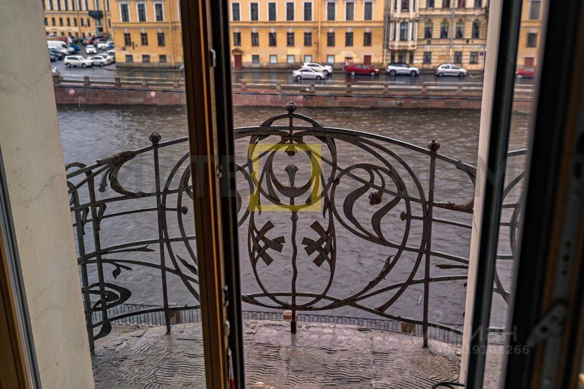 Пять широких окон смотрят прямо на воду — река Фонтанка становится частью интерьера.