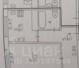 Общая площадь - 42,2 кв.м, жилая - 28,4 кв.м, кухня - 5,5 кв.м.