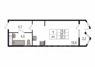 Площадь студии 28,7 м2 БЕЗ учета балкона. Планировка продумана таким образом, что зона кухни отделена от комнаты. Также предусмотрены рабочая зона и места для хранения. Новым собственникам частично остается мебель и техника.