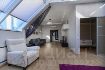 Общая площадь составляет 101,1 кв. м. Установлены кондиционеры и необходимая современная бытовая техника. По планировке: гостиная с мансардным потолком и камином; выделенная кухня с выходом на