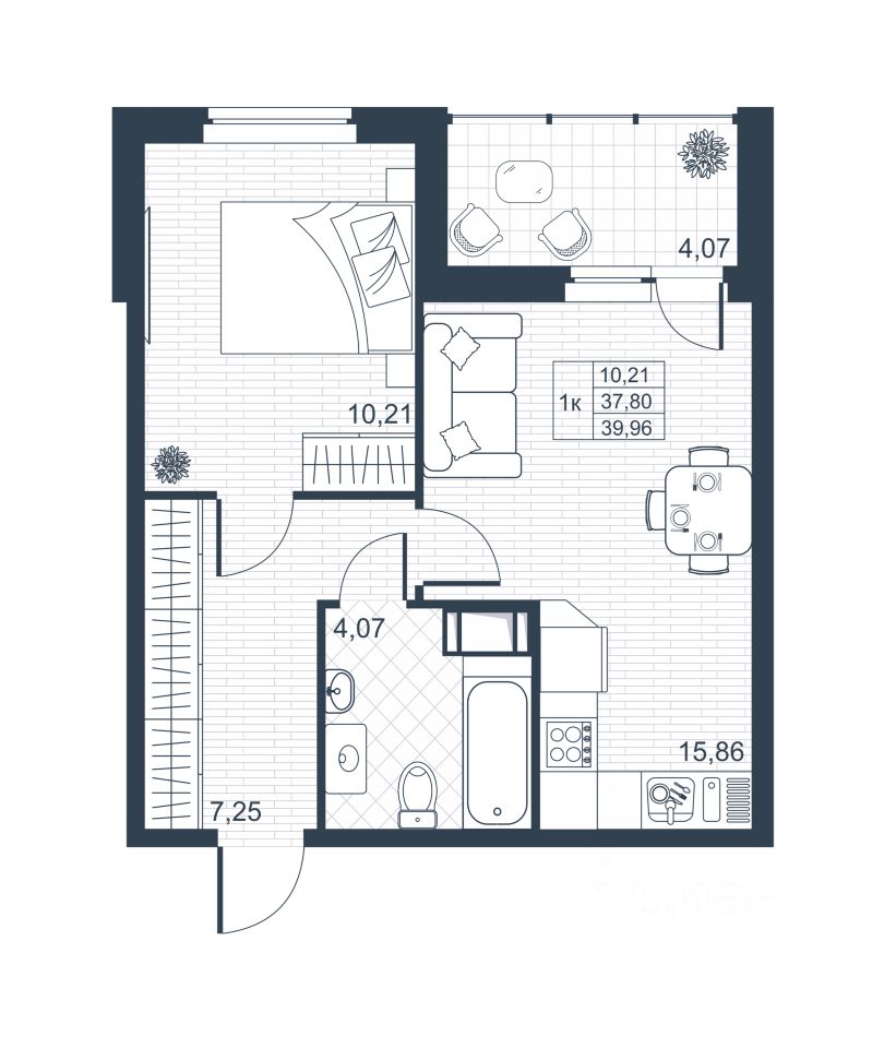 Общая площадь37,7 м²