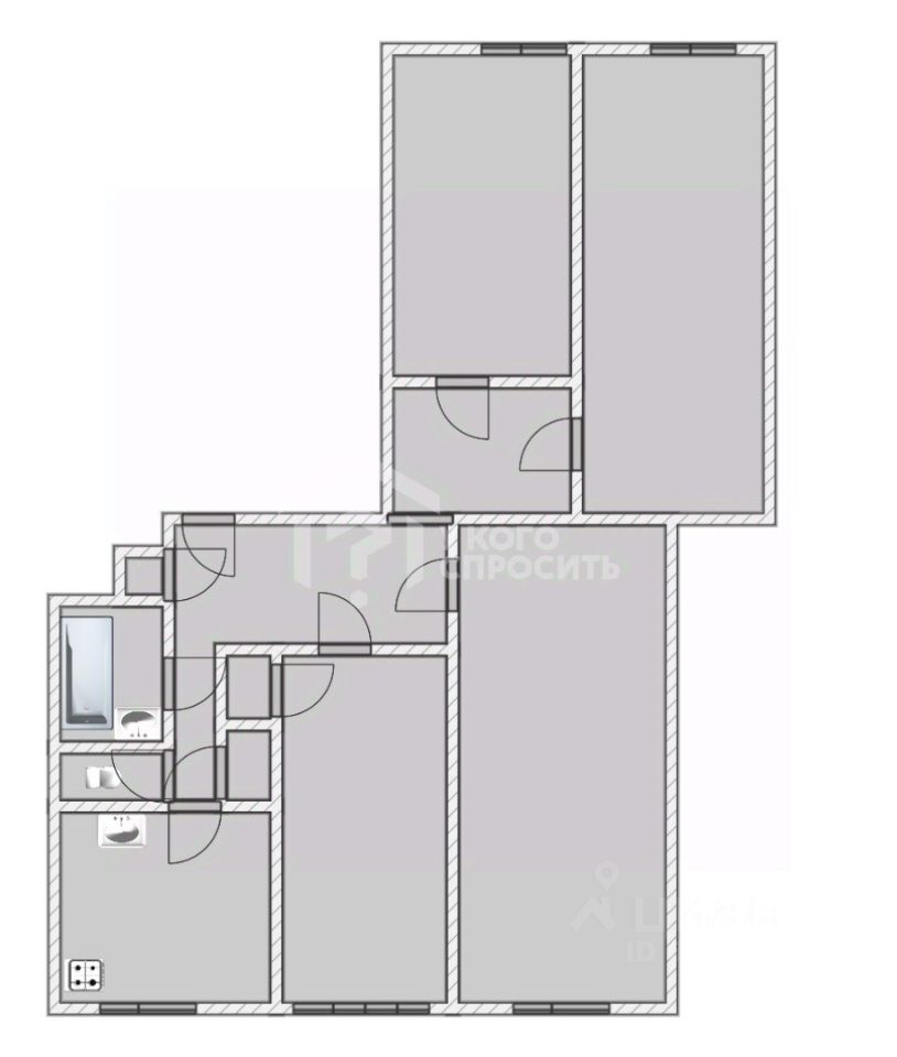 Просторная квартира с раздельными комнатами 15+11.4+18.2+12.6 м.кв. и удобной кухней 7.2 м.кв..