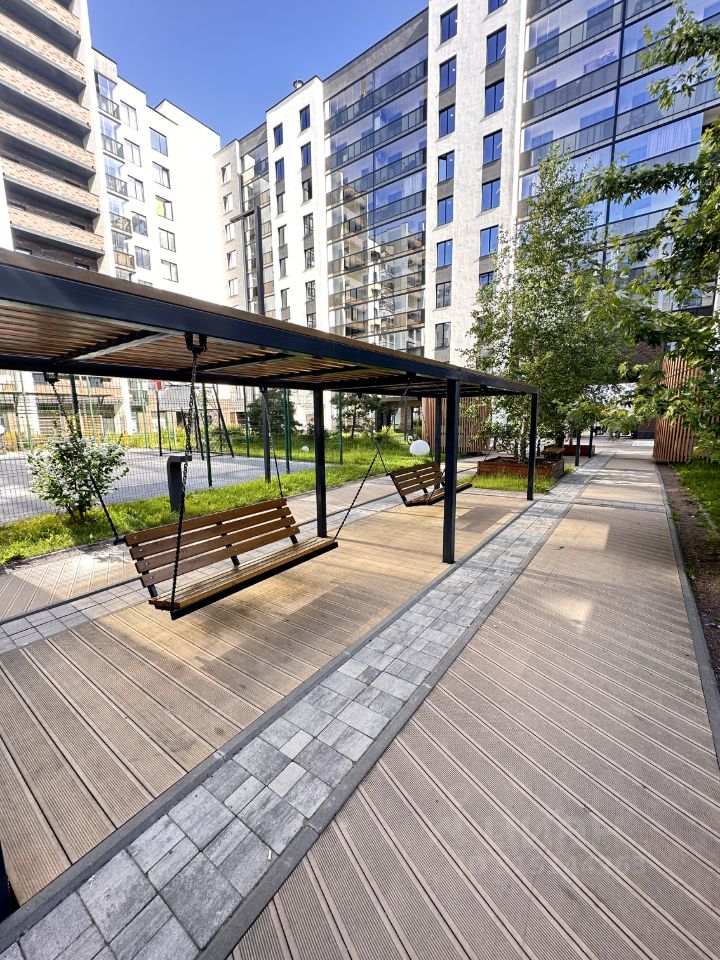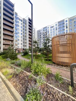 - Во дворе разбит полноценный дендропарк с геопластикой, разнообразными видами цветов, растений и кустарников. Растения специально подобраны таким образом, чтобы каждый сезон радовать жителей яркими красками;