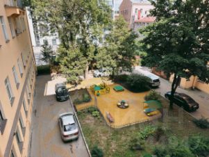 Квартира расположена на 3 этаже 6-этажного кирпичного дома. Окна выходят в благоустроенный, зеленый двор. Высокие потолки — 3,4м придают пространству легкость и объем. Функциональная планировка подойдет как для большой семьи, так и для тех, кто ищет возможности для зонирования или реализации собственного дизайн-проекта — все несущие стены расположены по периметру.