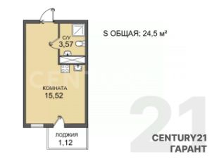 Продается уютная квартира-студия в живописном районе, где природа и современность гармонично сочетаются.