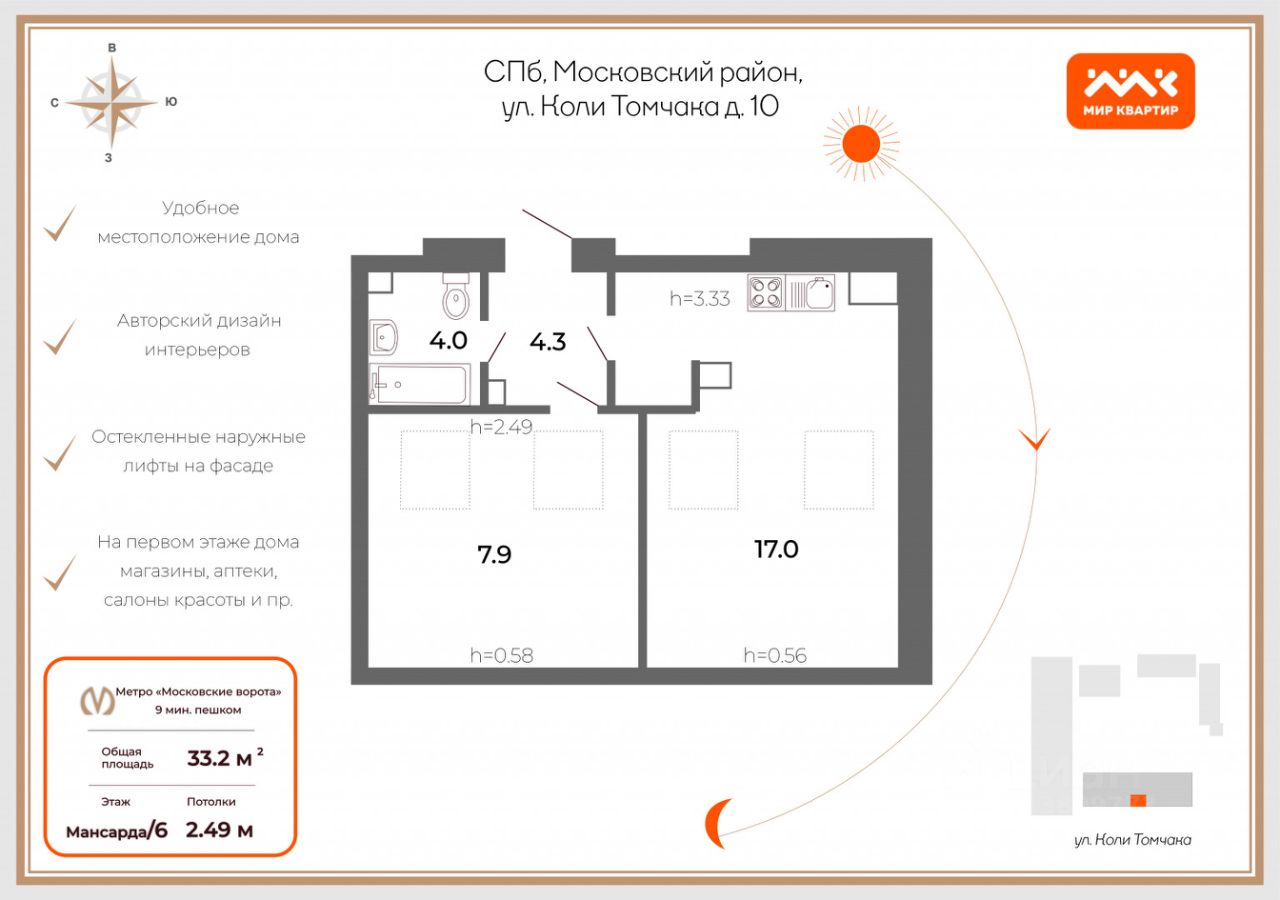 Большие мансардные окна , высокие потолки в коньке здания, просторный с/у и вместительные места хранения - это все есть в нашей уютной мансарде.