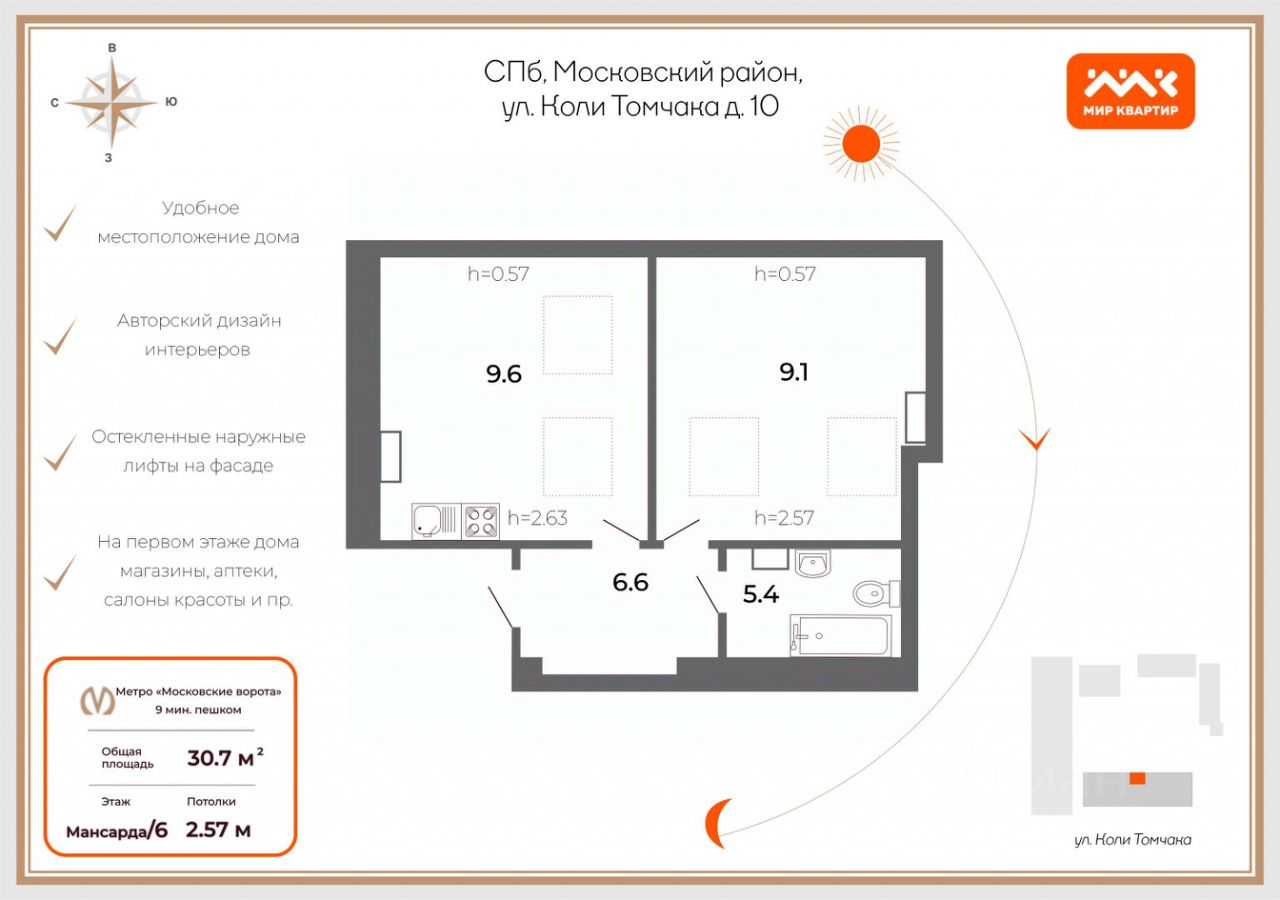 Уютная 1ккв с практичной и рациональной планировкой, расположенная на 6/6 мансардном этаже, в клубном доме "ПРОВИДАНСЪ".