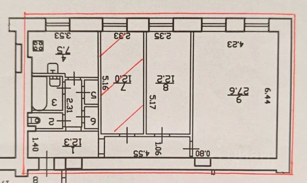 Квартира с ОТЛИЧНОЙ ПЛАНИРОВКОЙ : большая комната - гостиная 27.6 кв.м. с двумя окнами, две спальни 12.2 и 12 кв.м. две вместительные кладовки, два встроенных шкафа, есть гардеробная.