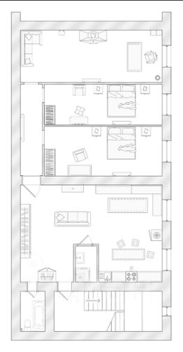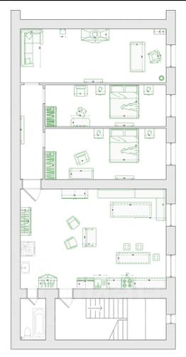 Прекрасная возможность обустроить пространство квартиры под свой функционал, возможность как вариант оформить кухню-гостиную площадью около 43 квм и три отдельные комнаты (в публикации представлены варианты планировки ) .