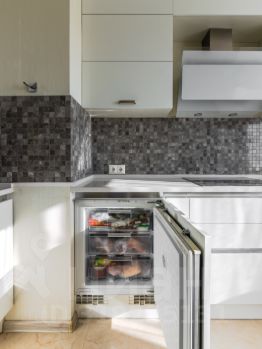 Кухня Мария, столешница из натурального камня, встроенная посудомоечная машина 60 см., духовой шкаф, варочная панель, морозильная камера. Пятидверный холодильник.