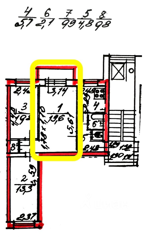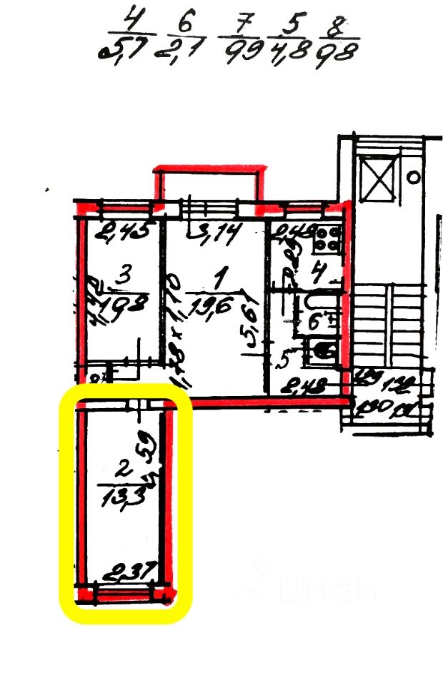 - Комнаты правильной формы 13.3 кв.м. и 19.6 кв.м. (+ балкон 2,30 кв.м.)