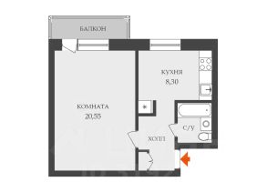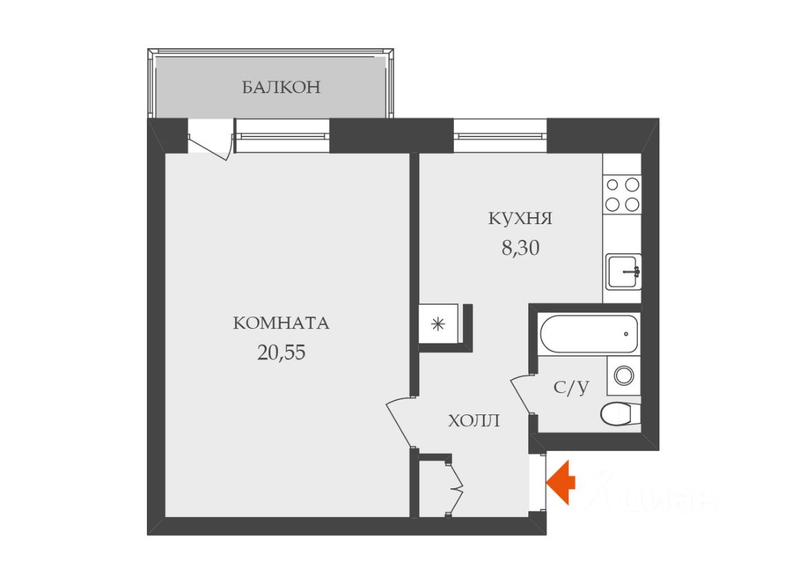 В прямой продаже светлая 1-комнатная квартира площадью 36,9 м².