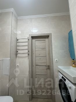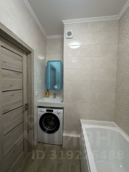 В ванной комнате доступ к счетчикам, стиральная машина под раковиной и шкафчик с зеркалом и подсветкой.