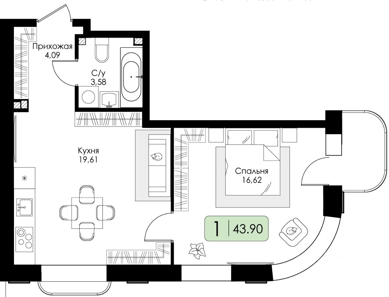 Продаётся 1-комнатная квартира в строящемся доме (Этап 1. подэтап 1.1), срок сдачи: IV-кв. 2027, общей площадью 43.9 кв.м., на 4 этаже. Новый жилой комплекс "Всевгород" от застройщика "Консоль" расположен по адресу: Ленинградская область, Всеволожский район, посёлок Романовка