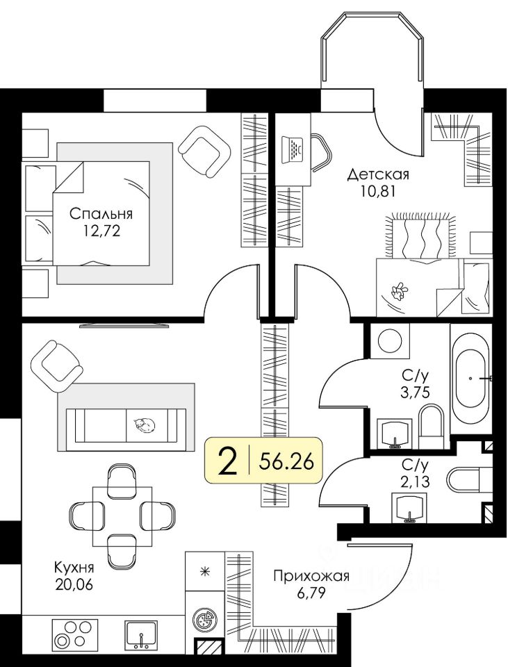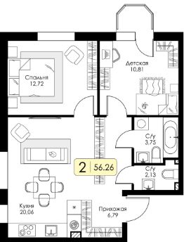 Продаётся 2-комнатная квартира в строящемся доме (Этап 1. подэтап 1.1), срок сдачи: IV-кв. 2027, общей площадью 56.26 кв.м., на 3 этаже. Новый жилой комплекс "Всевгород" от застройщика "Консоль" расположен по адресу: Ленинградская область, Всеволожский район, посёлок Романовка