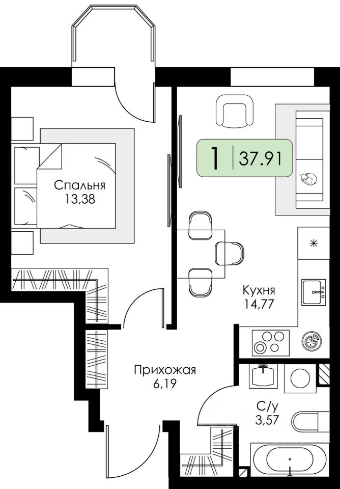 Продаётся 1-комнатная квартира в строящемся доме (Этап 1. подэтап 1.1), срок сдачи: IV-кв. 2027, общей площадью 37.91 кв.м., на 4 этаже. Новый жилой комплекс "Всевгород" от застройщика "Консоль" расположен по адресу: Ленинградская область, Всеволожский район, посёлок Романовка