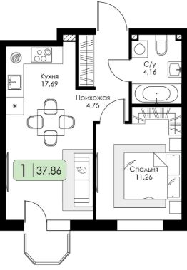 Продаётся 1-комнатная квартира в строящемся доме (Этап 1. подэтап 1.1), срок сдачи: IV-кв. 2027, общей площадью 37.86 кв.м., на 4 этаже. Новый жилой комплекс "Всевгород" от застройщика "Консоль" расположен по адресу: Ленинградская область, Всеволожский район, посёлок Романовка