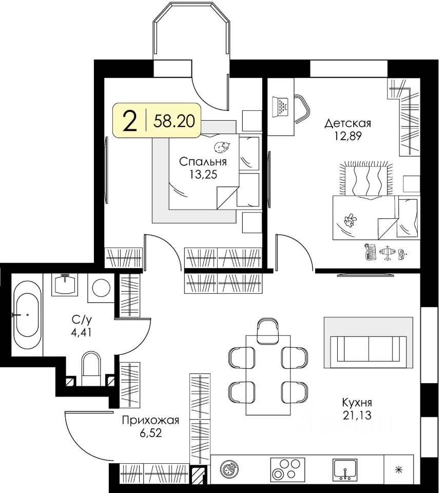 Продаётся 2-комнатная квартира в строящемся доме (Этап 1. подэтап 1.1), срок сдачи: IV-кв. 2027, общей площадью 58.2 кв.м., на 2 этаже. Новый жилой комплекс "Всевгород" от застройщика "Консоль" расположен по адресу: Ленинградская область, Всеволожский район, посёлок Романовка