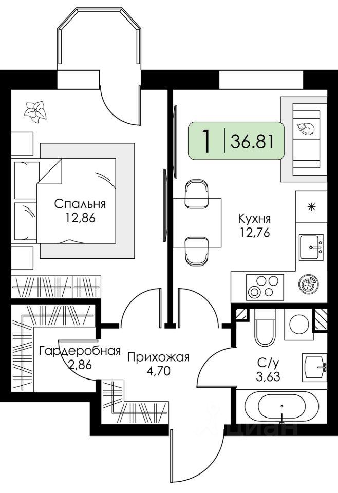 Продаётся 1-комнатная квартира в строящемся доме (Этап 1. подэтап 1.1), срок сдачи: IV-кв. 2027, общей площадью 36.81 кв.м., на 4 этаже. Новый жилой комплекс "Всевгород" от застройщика "Консоль" расположен по адресу: Ленинградская область, Всеволожский район, посёлок Романовка