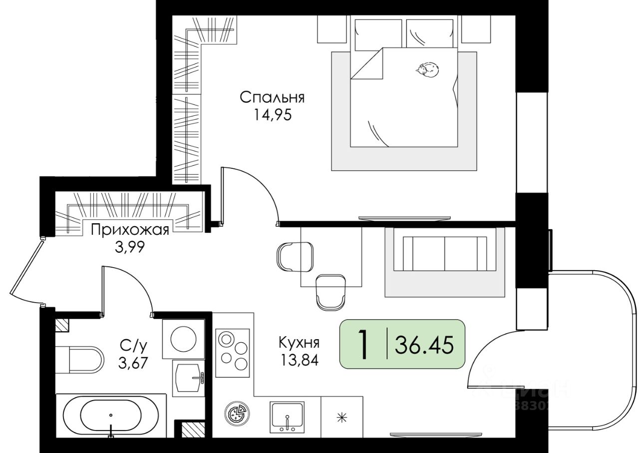 Продаётся 1-комнатная квартира в строящемся доме (Этап 1. подэтап 1.1), срок сдачи: IV-кв. 2027, общей площадью 36.45 кв.м., на 3 этаже. Новый жилой комплекс "Всевгород" от застройщика "Консоль" расположен по адресу: Ленинградская область, Всеволожский район, посёлок Романовка