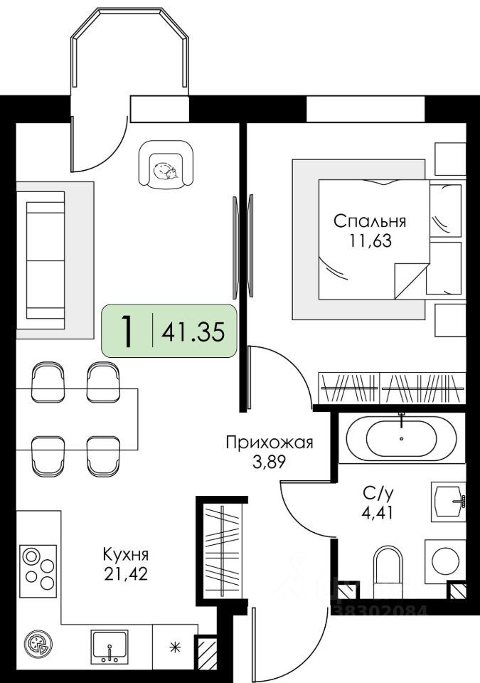 Продаётся 1-комнатная квартира в строящемся доме (Этап 1. подэтап 1.1), срок сдачи: IV-кв. 2027, общей площадью 41.35 кв.м., на 3 этаже. Новый жилой комплекс "Всевгород" от застройщика "Консоль" расположен по адресу: Ленинградская область, Всеволожский район, посёлок Романовка