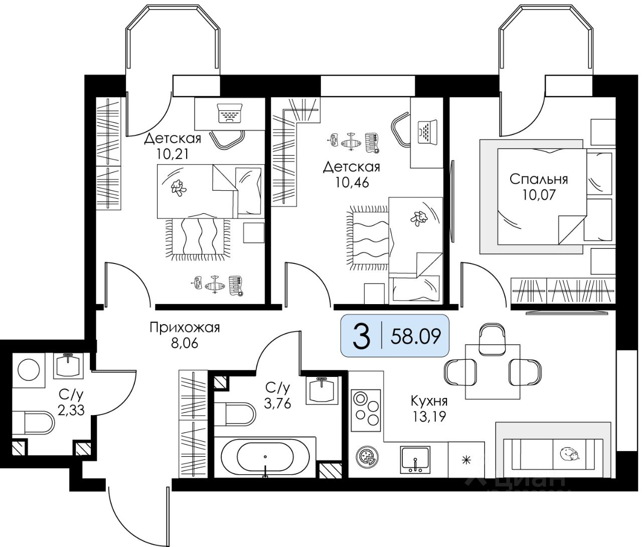 Продаётся 2-комнатная квартира в строящемся доме (Этап 1. подэтап 1.1), срок сдачи: IV-кв. 2027, общей площадью 57.93 кв.м., на 3 этаже. Новый жилой комплекс "Всевгород" от застройщика "Консоль" расположен по адресу: Ленинградская область, Всеволожский район, посёлок Романовка