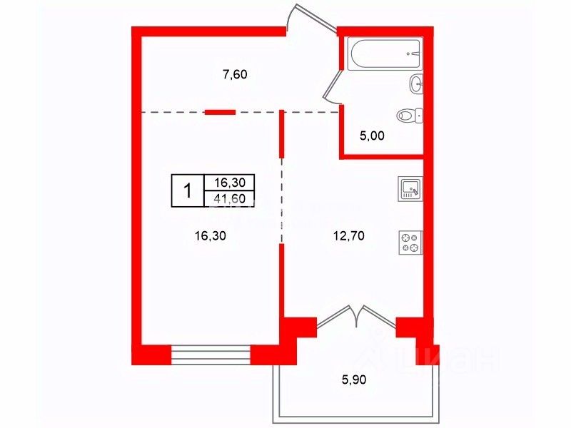 Квартира находится на первом этаже, общая площадь — 41,6 м2. Просторная кухня 12,7 м2 станет отличным местом для ужинов с семьёй или встреч с друзьями. Большие окна в пол наполняют пространство светом, создавая ощущение простора и уюта. Во всей квартире — тёплые полы, что особенно приятно в холодное время года. Выполнен косметический ремонт. В прихожей создана небольшая комната, которую можно использовать как гардеробную или систему хранения. Балкон площадью почти 6 м2 — приятный бонус: можно обустроить зону отдыха или мини-кабинет.