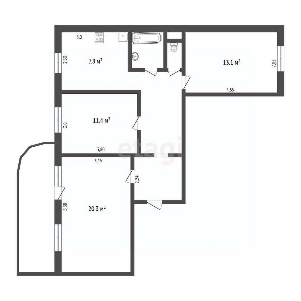 Просторная, двусторонняя квартира с изолированными комнатами. Четыре окна выходят на север в тихий зеленый двор, одно - на юг на Капитанскую ул. Большая гостиная с двумя окнами и выходом на балкон.