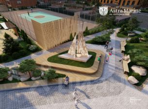Главной точкой притяжения комплекса станет авторский арт-объект - стела Astra Marine и сад камней с фонтаном. Рядом находится мини-променад для приятных прогулок.