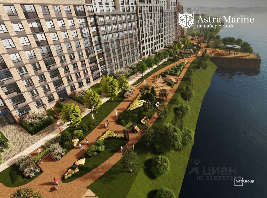 В северной части комплекса расположены три двора-патио с площадками для отдыха и площадками SetlKids. На благоустроенной набереженой Astra Marine запланирована установка лежаков, ротонды с качелями и панорамная смотровая площадка с биноклями. Общедомовую систему дополняет круглосуточное видеонаблюдение на территории и в парадных. На каждом этаже — пожарная сигнализация, датчики дыма, системы автономного пожаротушения.