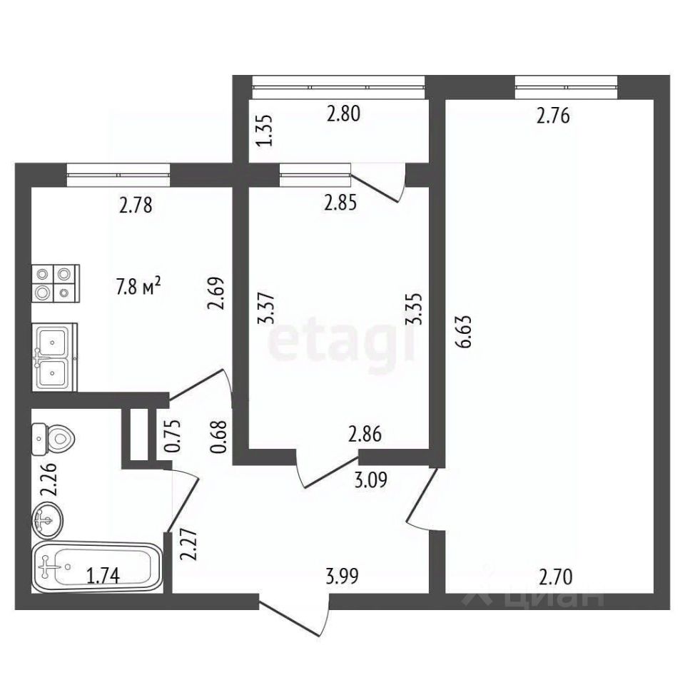 Окна квартиры выходят во двор, обеспечивая тишину и уединение. Наличие лоджии приятный бонус, где можно организовать зону отдыха или хранить вещи. Санузел совмещенный.