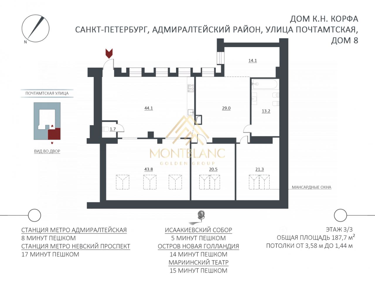 В пешей доступности — Исаакий, Медный всадник, Невский, Дворцовая площадь, Адмиралтейство, Нева, Новая Голландия, .