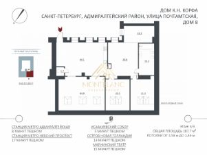 Адрес — в самом историческом центре Петербурга, буквально окружён главными архитектурными и культурными доминантами.